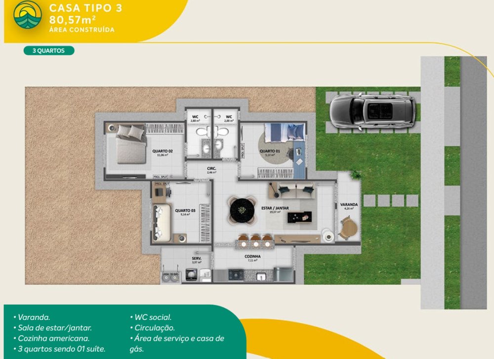 - Área Privativa: 80 m²